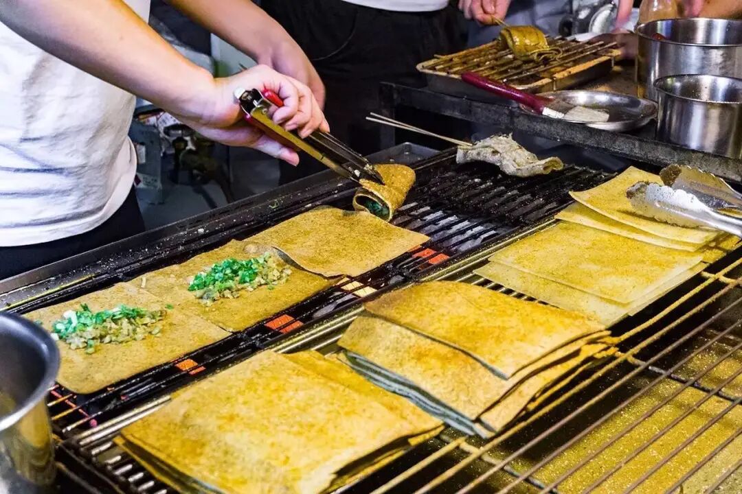 在蛋烘糕中,你可以选择多达十几种馅料,不论你是甜口还是咸口,在这里都能得到满足。常见的馅心有白糖芝麻、仁锦、八宝、水晶、蜜枣、泡豇豆、火腿等。(悄咪咪的说一句,本熊可喜欢葡萄干的了……)