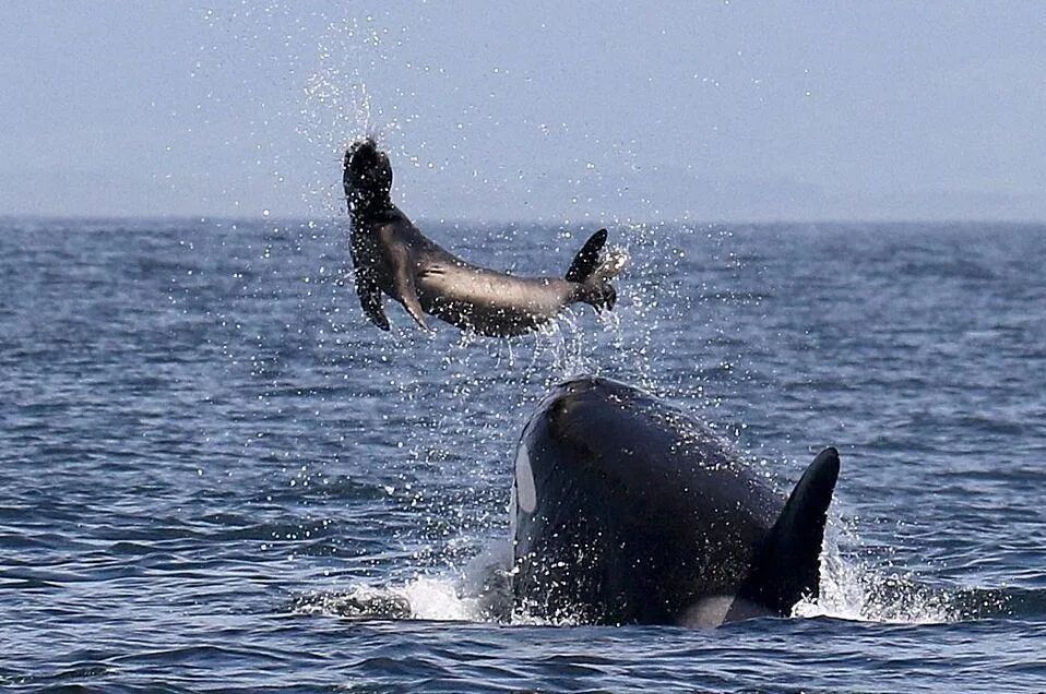 虎鲸的进食很广泛,不像座头鲸吃磷虾这种小型生物,它们也会捕食更大的像海豹和海狮作为食物,有时候还会吃座头鲸等鲸类。