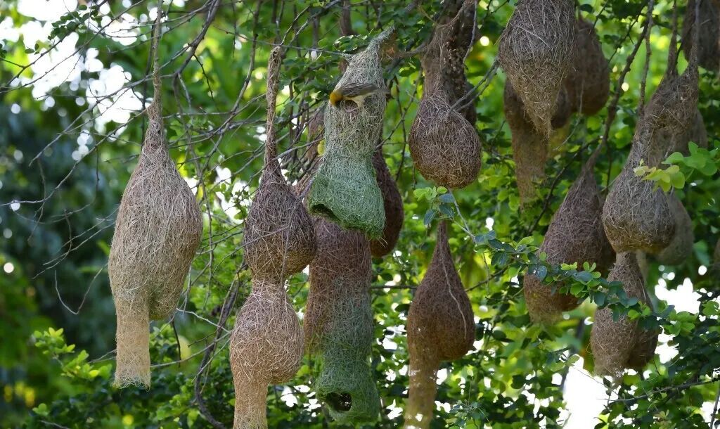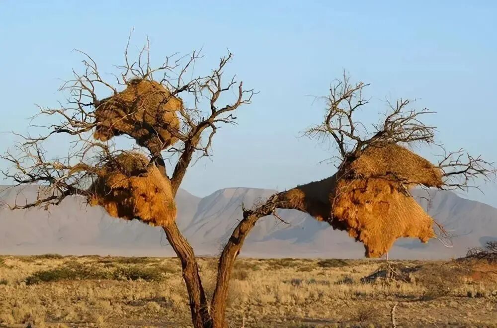 其中生活在非洲的主教鸟,尤其喜欢建造很大的鸟窝,它们建造的鸟巢就像是一个巨大的干草堆搭在树上或者电线杆上,多达几百斤,甚至可以把树压垮。