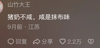 有调皮的网友在底下扎心留言:哥们,猪奶不咸,咸是抹布味。