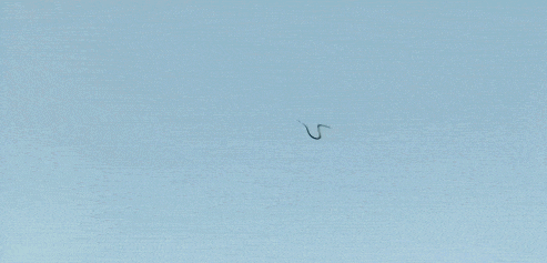 飞出去了还没完,为了准确降落在目的地,金花蛇需要在空中不时扭曲身体和尾巴,尽量减少空气阻力,让整个飞行弹道都保持足够的推进力。从整个过程看,金花蛇可谓自然界中当之无愧的「空气动力学大师」!