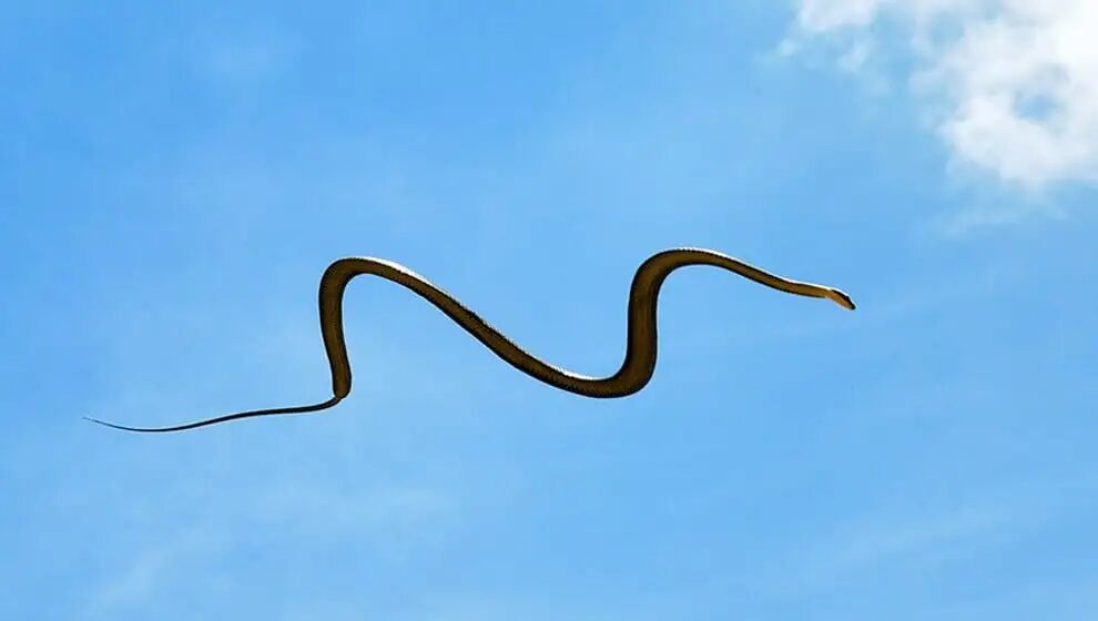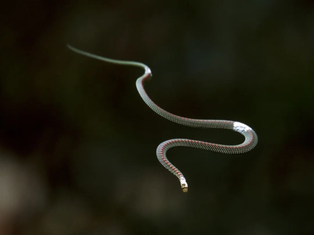 有一种蛇,没有翅膀,没有皮膜,甚至没有四肢,乍一看和普通蛇类无异。当你以为它平平无奇时,它却轻松攀上树冠,在最高的枝头一跃而起,好像有轻功一般在空中滑翔数十米,到达了另外一棵它想要到达的树上。