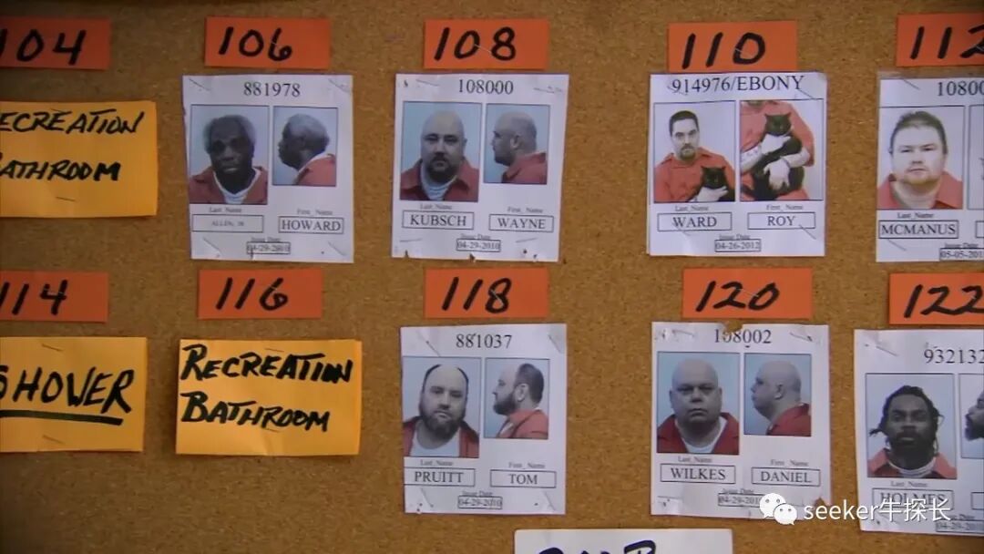 为了避免囚犯内斗,狱警们也是煞费苦心,这面铺满了各种色卡的画板,详细记录了囚犯们之间的“恩恩怨怨”,比如304号牢房的囚犯欠了307号的钱,那在接下来的监狱活动中,狱警就要避免两个人接触,否则医务室又会多一名伤员。