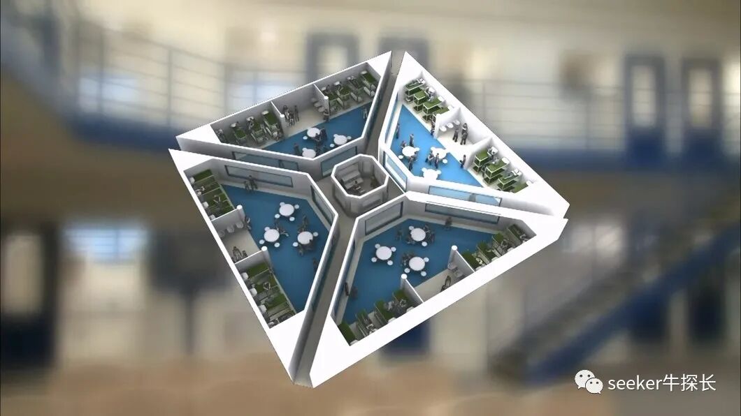 为了更有效地管理囚犯,这座监狱还采用了“四叶草”的建筑结构,顾名思义,每层楼的横切面就像一片四叶草,周边是四个牢区,内部嵌有公共区和两间牢房,中间是狱警的控制塔,从这里能控制所有大门的开关,以及监控视频的调取。