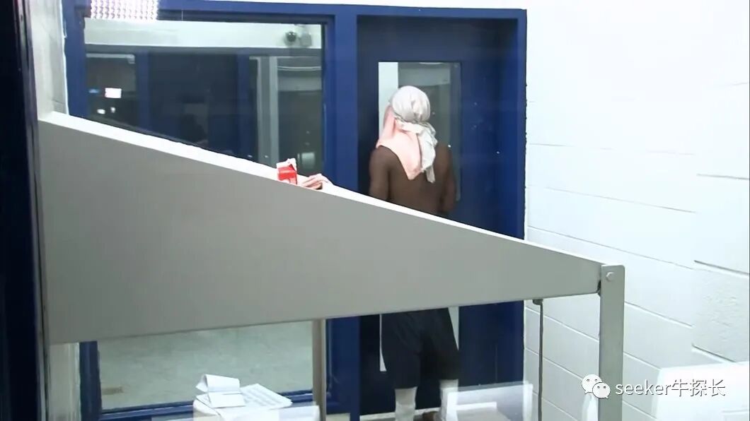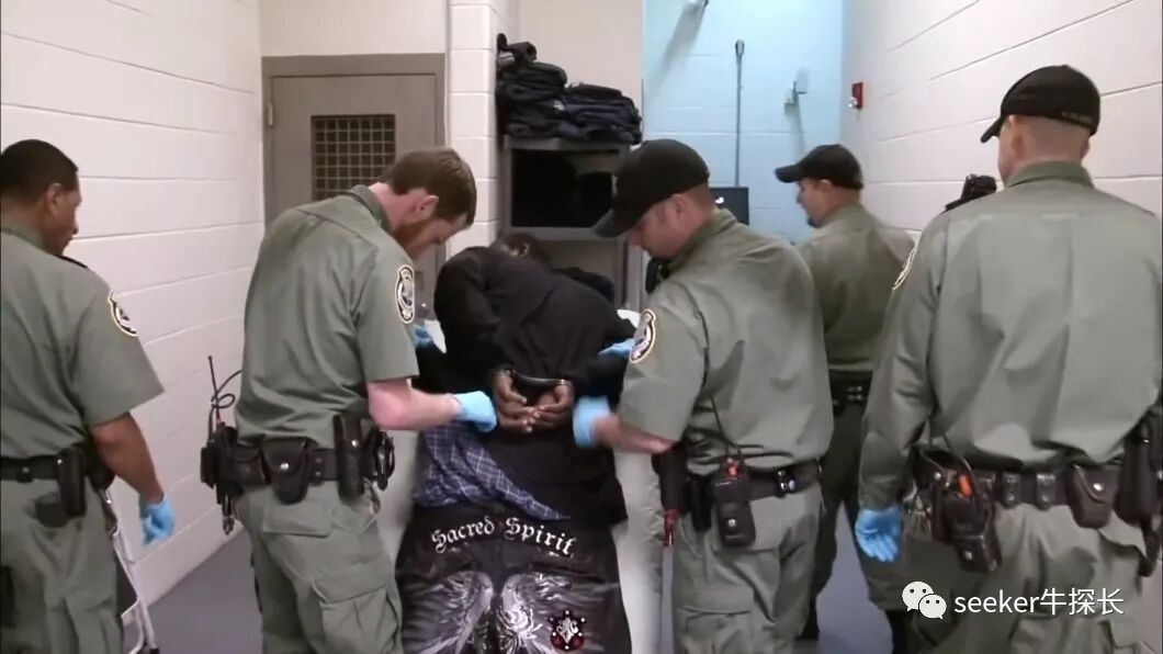 虽然这已经很人性化了,但仍然有很多囚犯不买账,比如这个名叫特林普的囚犯,就因为恶意袭警被控制了起来,5名狱警将他五花大绑,然后全面搜身,最后把他关到了一间禁闭室面壁思过。