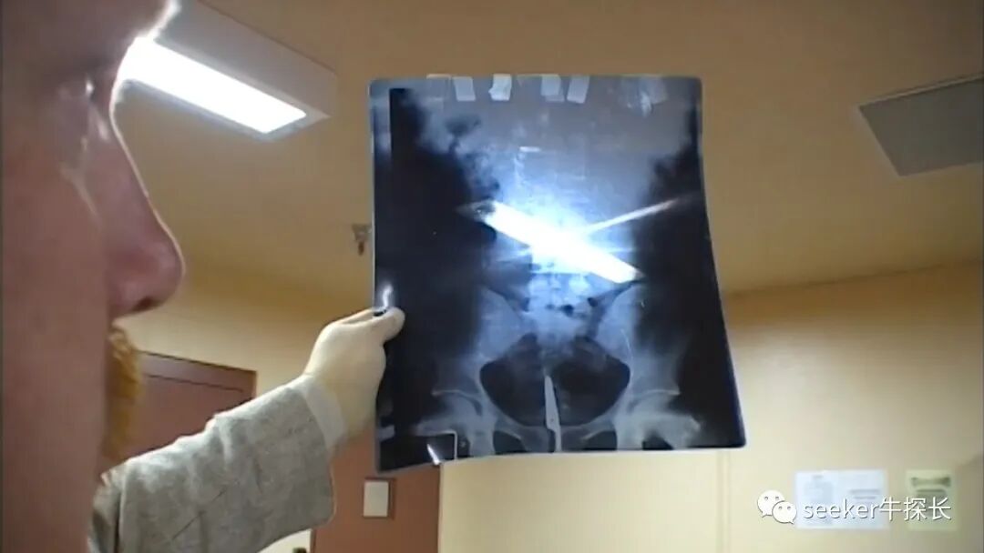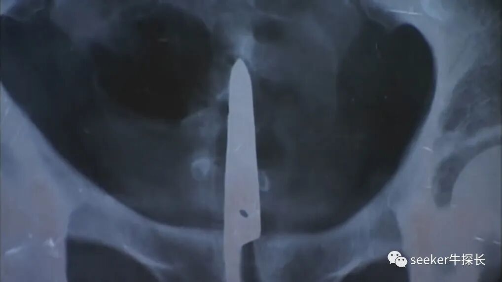 你看这张X光照片,下体的部位居然有一把尖刀。