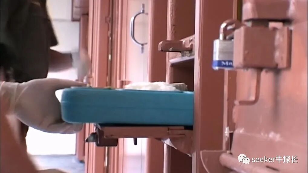 值得一提的是,狱警发放餐食,是项高危行动,因为房门上的开口会被打开,囚犯会选择在这个时候,用粪便、尿液或者自制的武器攻击狱警。