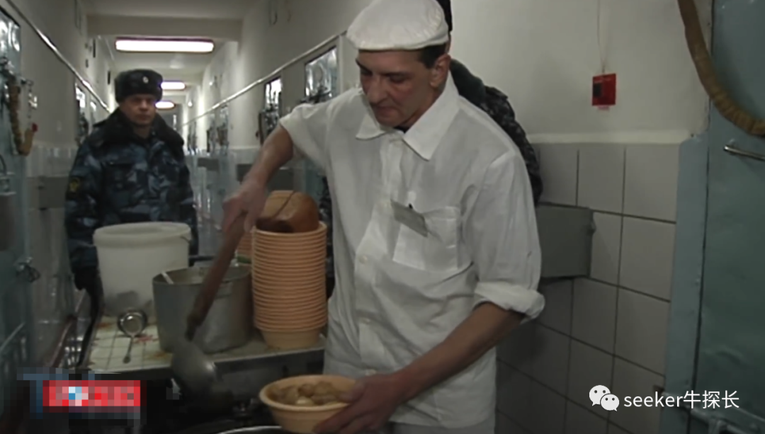 厨师会推着餐车,通过门上的小窗,逐一把牢饭派送给囚犯。