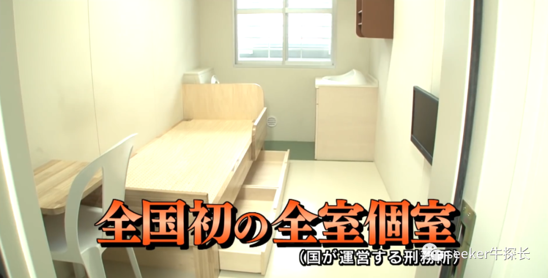 牢房的空间虽然不大,但麻雀虽小,五脏俱全,包括带有收纳功能的木质床铺,以及书桌、马桶、洗脸池和一台电视机。