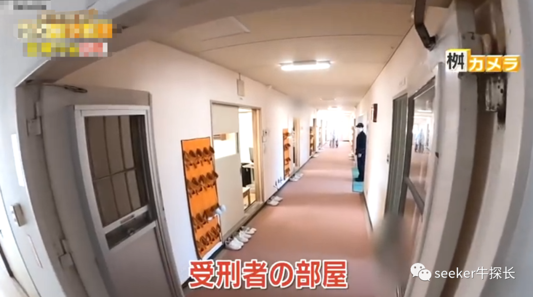 穿过了整整三重大门,记者来到了女囚犯的生活区,日本监狱对卫生环境的要求很高,楼道内几乎一尘不染,牢房门口的鞋子也摆放得十分整齐。