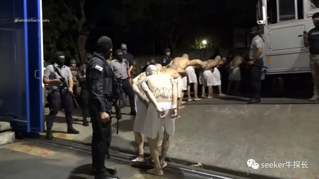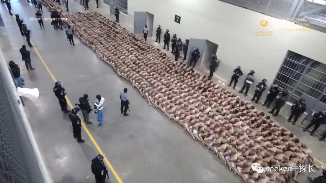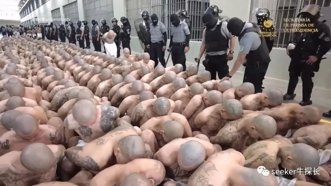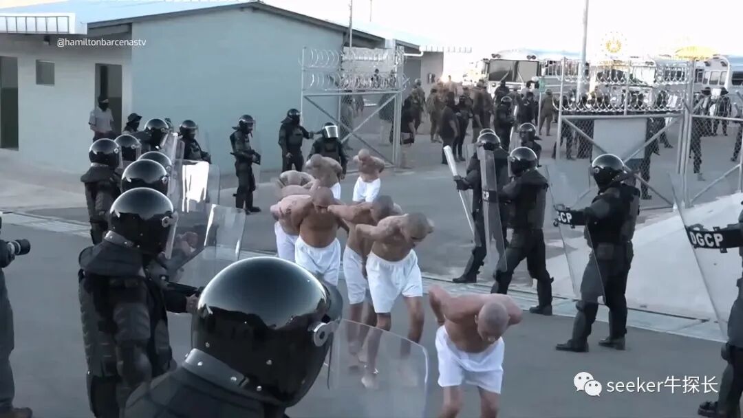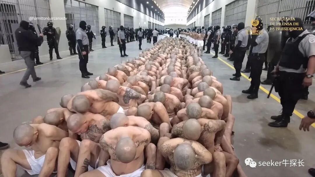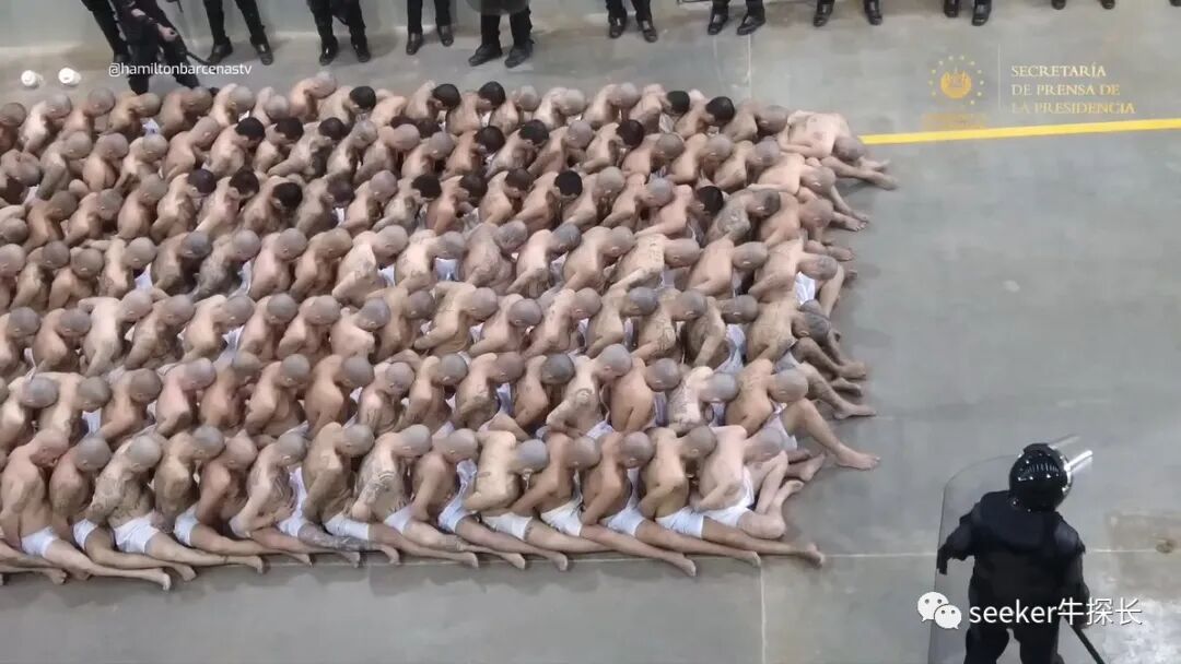 这就是萨尔瓦多恐怖主义监禁中心第一批2000名囚犯的转监流程,没有任何情感可言,全程都是强硬的狠活。