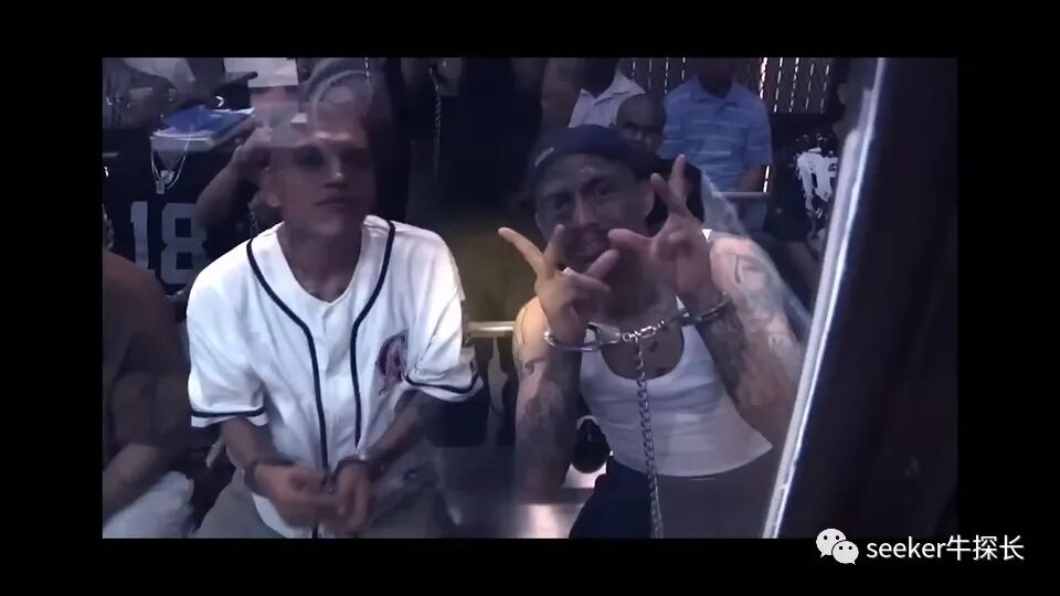 他们双手被手铐反扣,赤裸着上身,人挨着人坐在地板上,等待狱警的转押安排,看这遍地人头的壮观景象,像不像现实版的“人体蜈蚣”。
