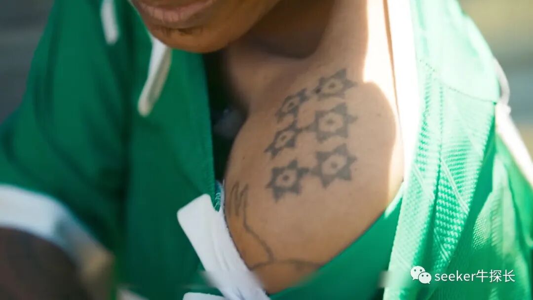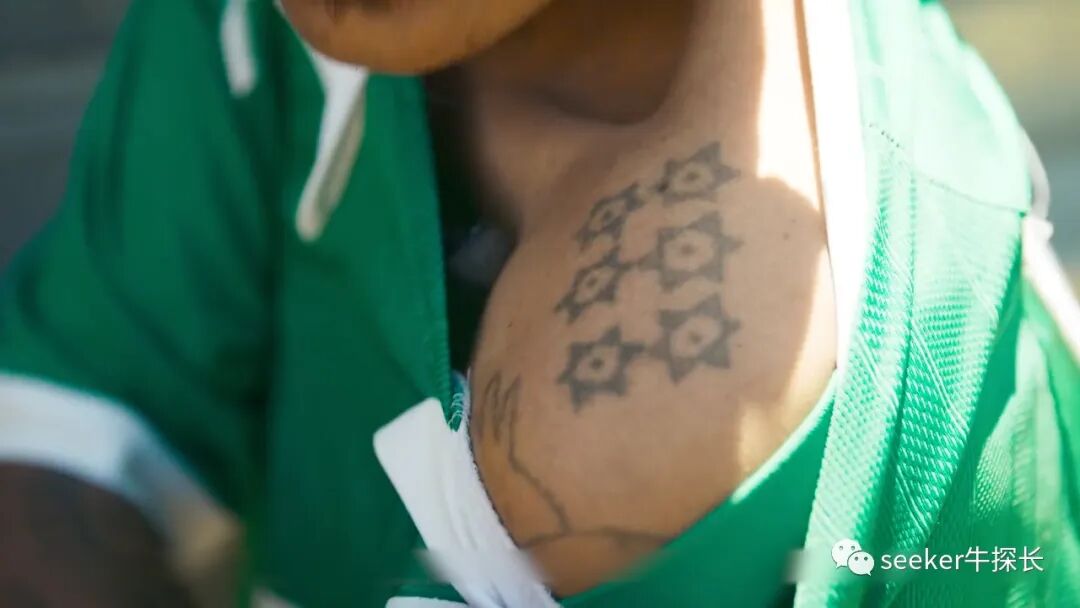 这不是危言耸听,在囚犯的左右肩膀上,纹着2个类似于军衔的徽章。