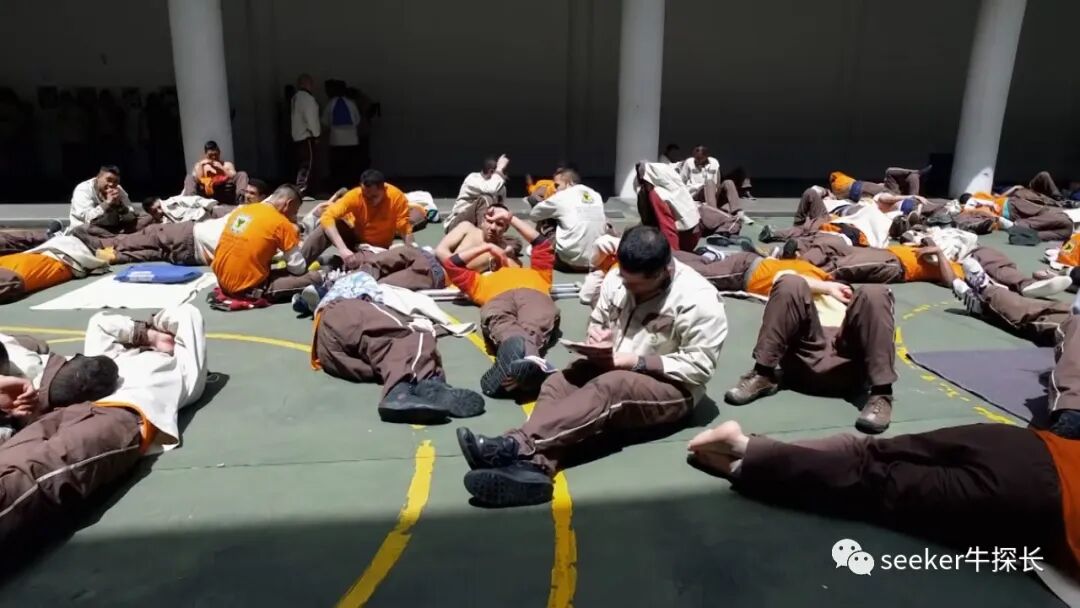 早上6点,是监狱规定的起床时间,囚犯们也陆续走到了中央广场区自由活动。