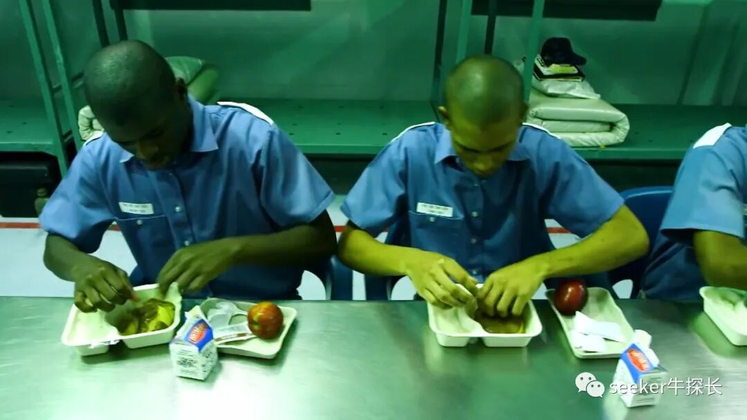 随后,狱警会发出吃饭的指令,他们需要在10分钟内把早饭全部吃完。