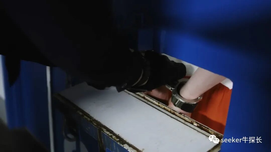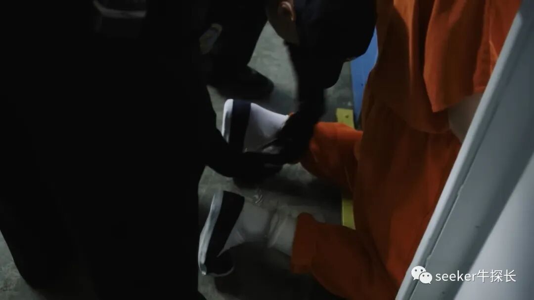 随后,囚犯要将双手反扣,通过小窗戴好手铐,打开房门后,还得反向跪着,让狱警戴上脚镣。