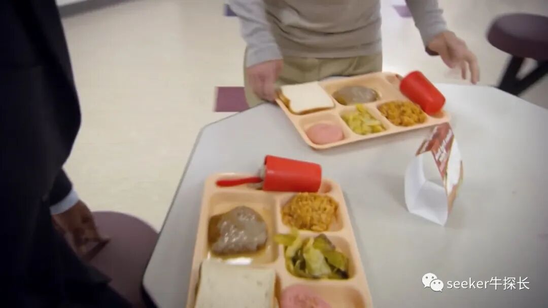 囚犯们三五人一桌,聊聊天,吃吃饭,用餐过后,再把餐盘丢给专业人员集中处理,然后就可以回房睡觉了。