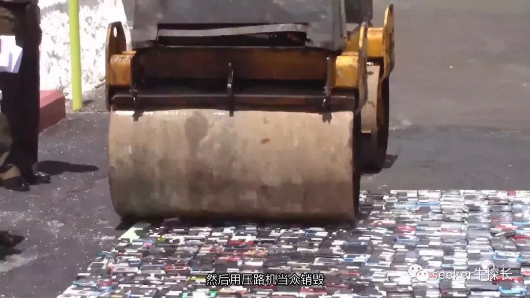 甚至还当着800多名囚犯的面,用压路机把查获的上千部手机,当场碾成碎片。