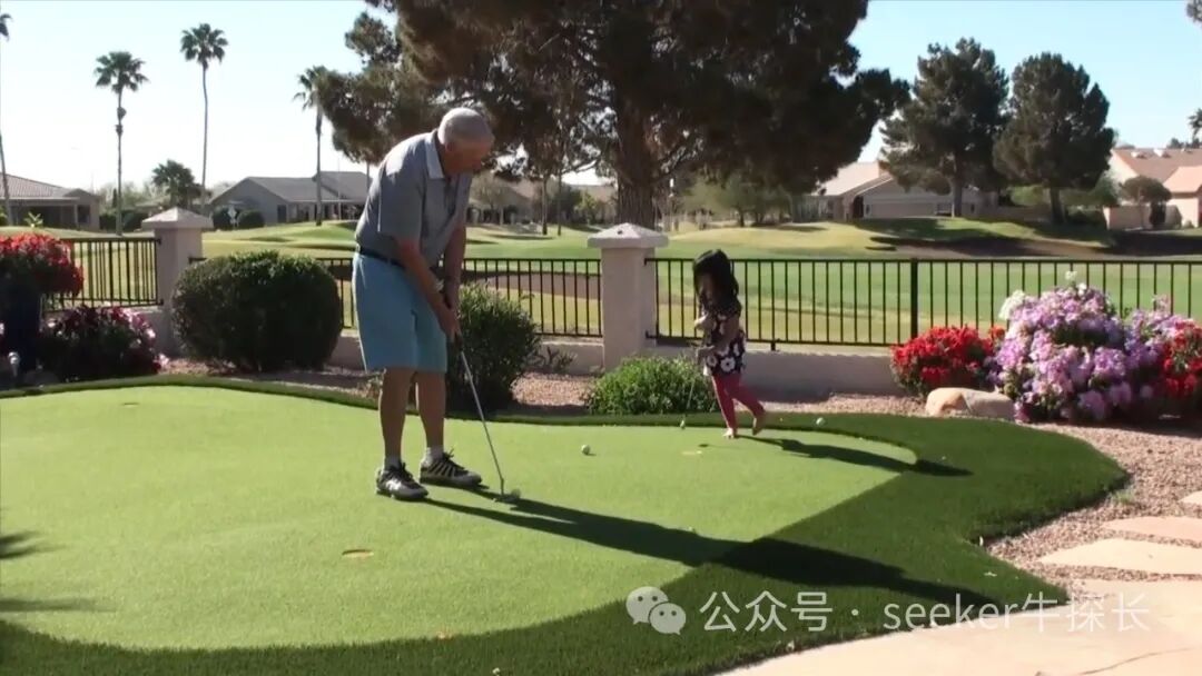 陪她一起打高尔夫球,在硕大的草坪上奔跑,在寒冷的冬天钓鱼,骑在爷爷的脖子上登山,以及和自家养的奶牛亲密互动。
