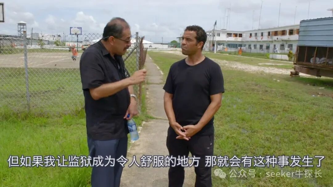 你看这个囚犯和记者交流的方式,像不像一只被圈养的狗。