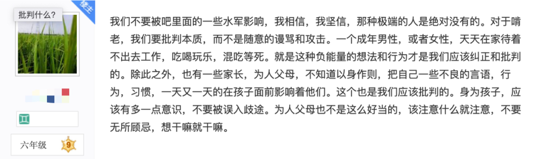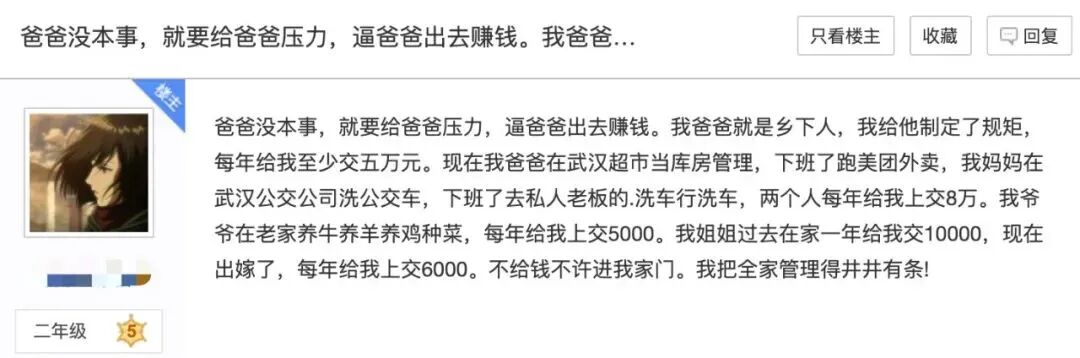 虽然吧主表示,他们的本意是帮助在家里混吃等死的成年人,但还是有一大波啃老啃出优越感的,在津津乐道地分享自己的啃老经验。