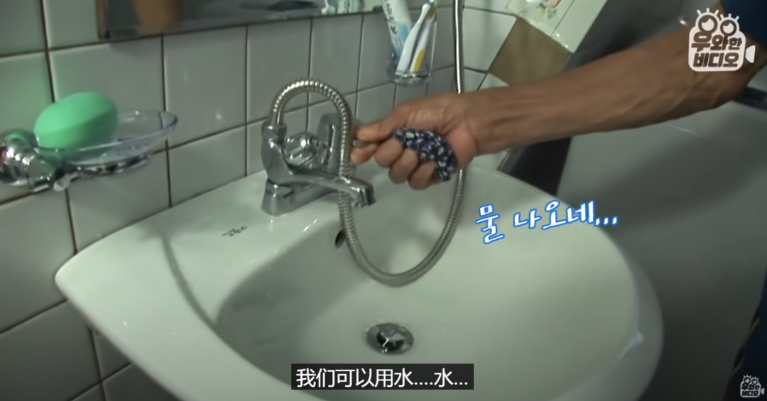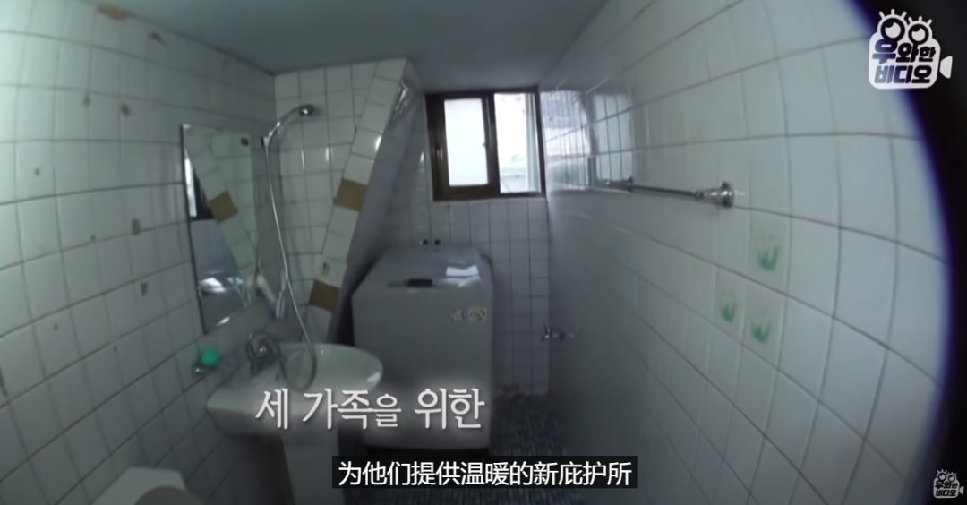 卫生间里换了新的洗衣机和水龙头,崔奶奶再也不用蹲在地上,用存起来的漏水洗衣服。