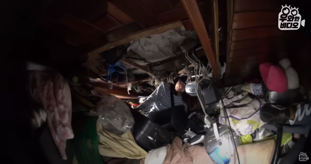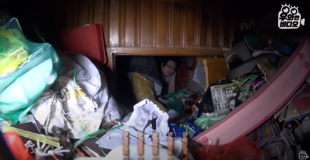 房间里的每一寸空间,都被分不清是垃圾还是日常用品的东西填满,高度早已到达天花板。