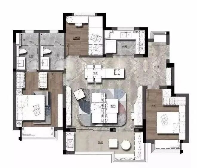 这种设计不仅看起来优雅大气,更能够高效地利用空间。在装修时,方正的户型能极大地简化布局规划,减少不必要的墙体改动和费用。而且,方正的户型还具有良好的私密性,每个空间的功能划分清晰,充分保障家庭成员的隐私。