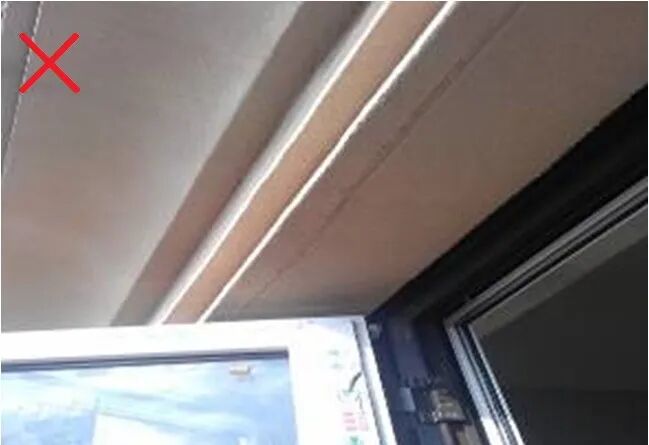 采光窗顶部玻璃直接与装饰面连接,未探入结构面;立面构件或饰面层施工存在偏差,导致缝隙过大;产生渗漏: