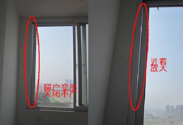 型材选择不当,铝合金窗壁厚薄,塑钢窗未按规定设置增强型钢。