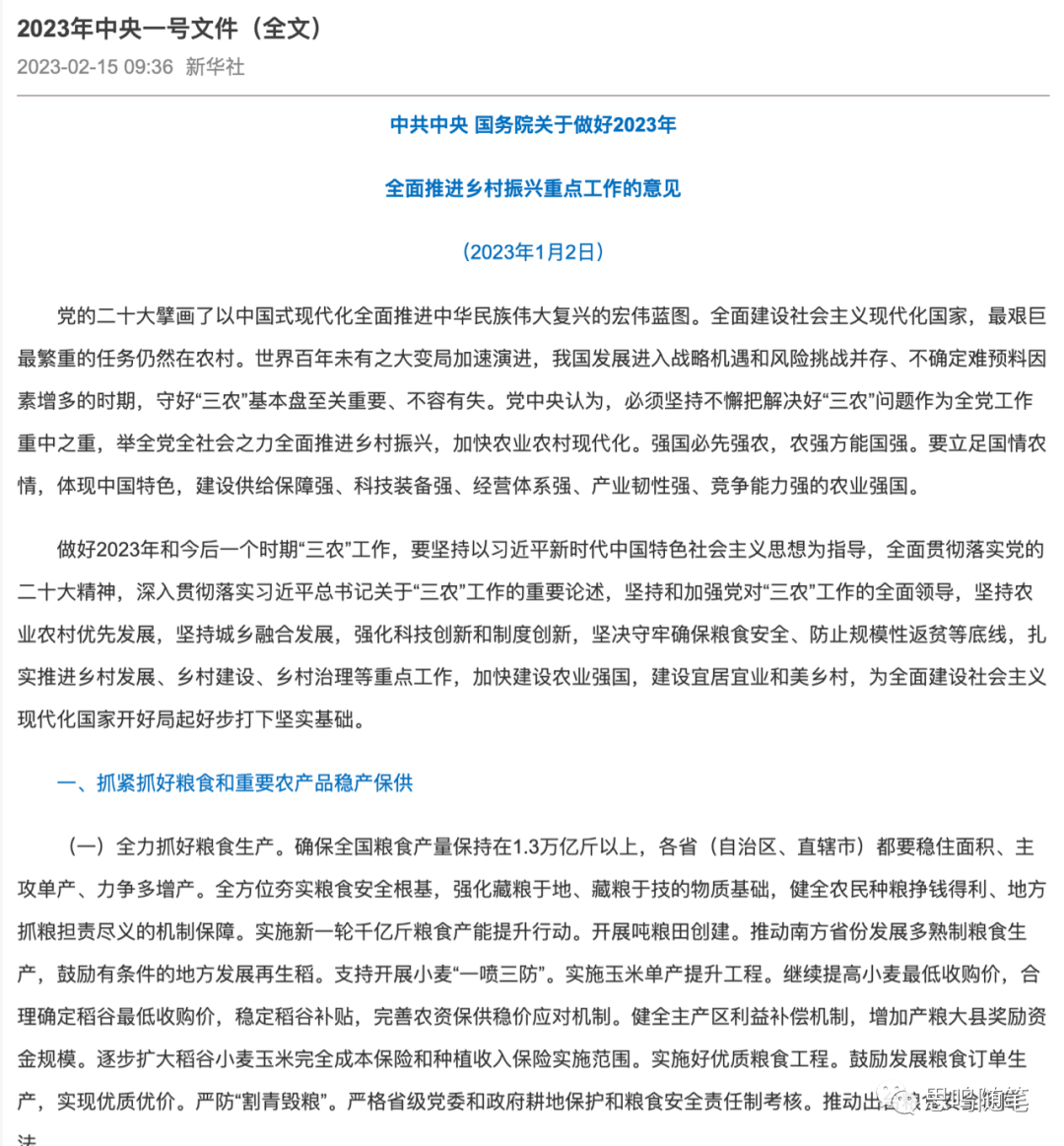 图源2023年中央一号文件截图