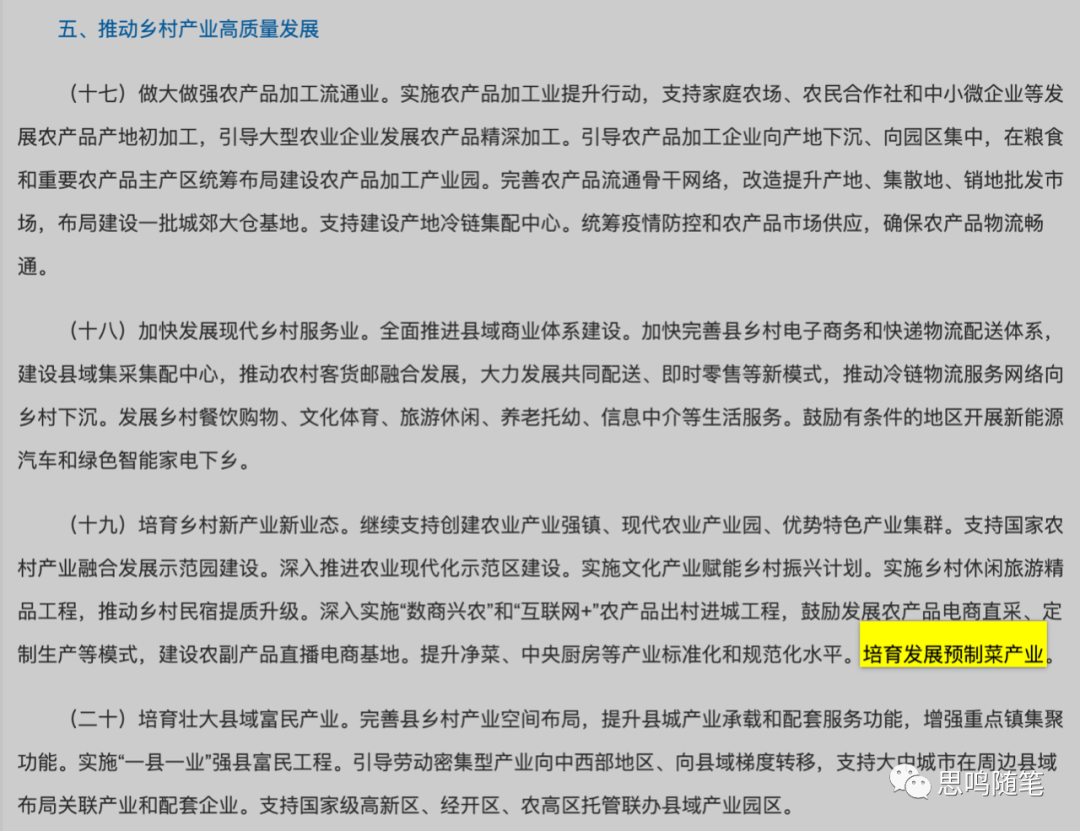 释放的信号很明显,中央支持预制菜这一新产业新业态。