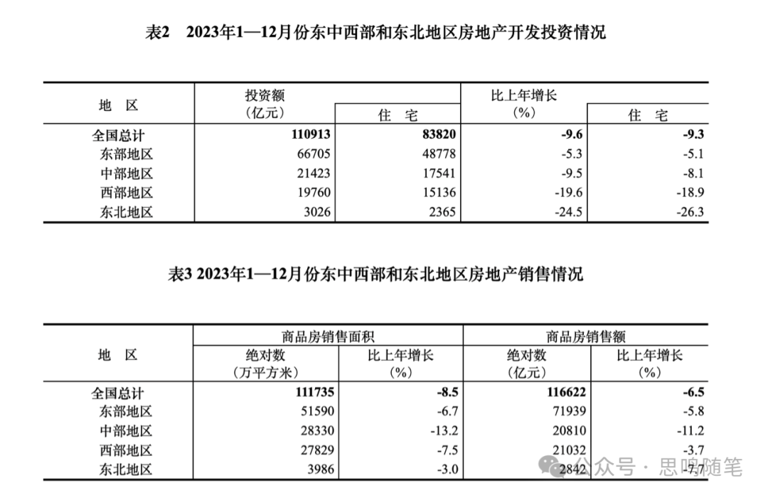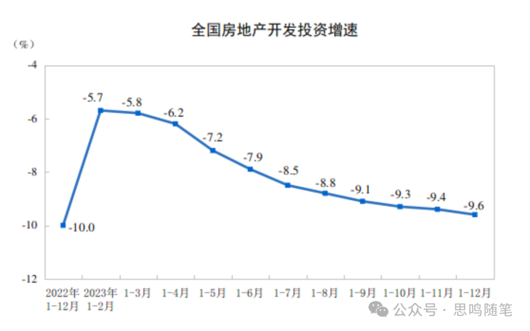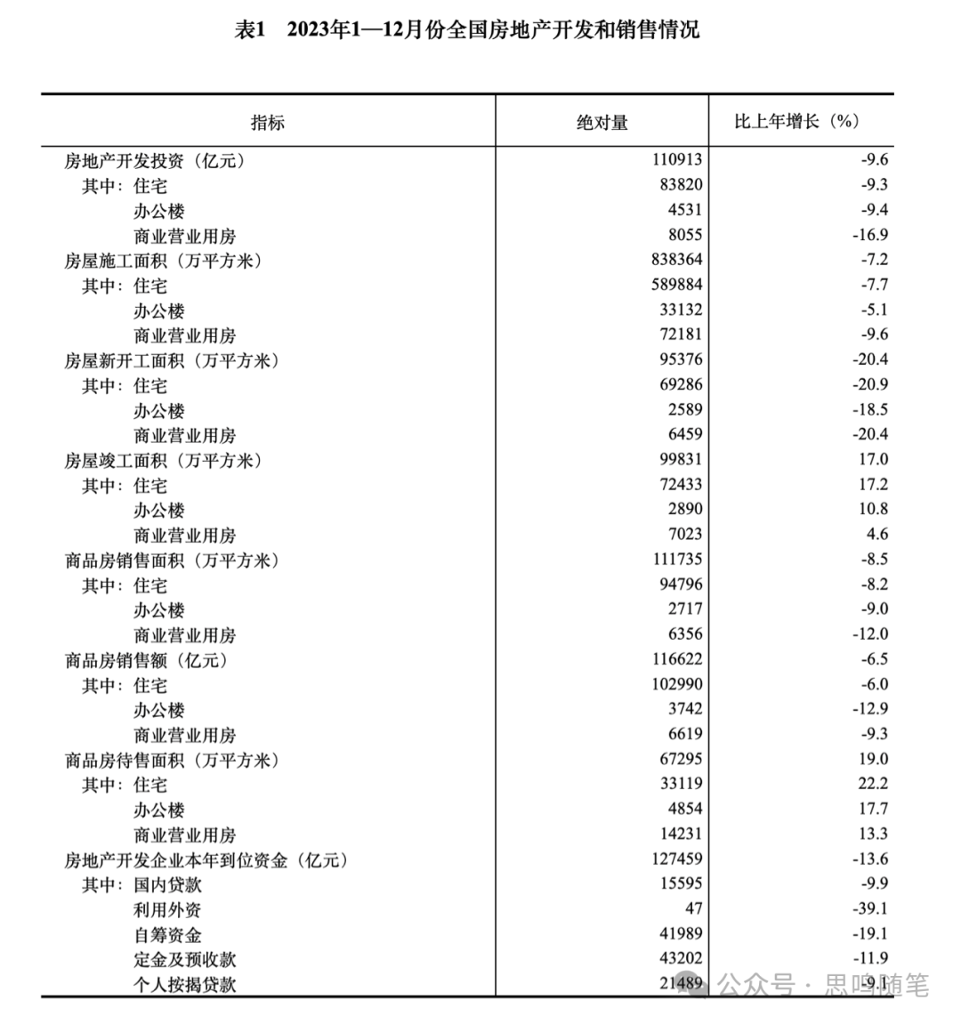 2023年,全国房地产开发投资110913亿元,比上年下降9.6%;其中,住宅投资83820亿元,下降9.3%。