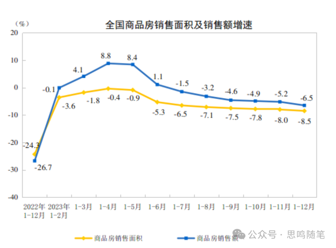 2023年,商品房销售面积111735万平方米,比上年下降8.5%,其中住宅销售面积下降8.2%。商品房销售额116622亿元,下降6.5%,其中住宅销售额下降6.0%。