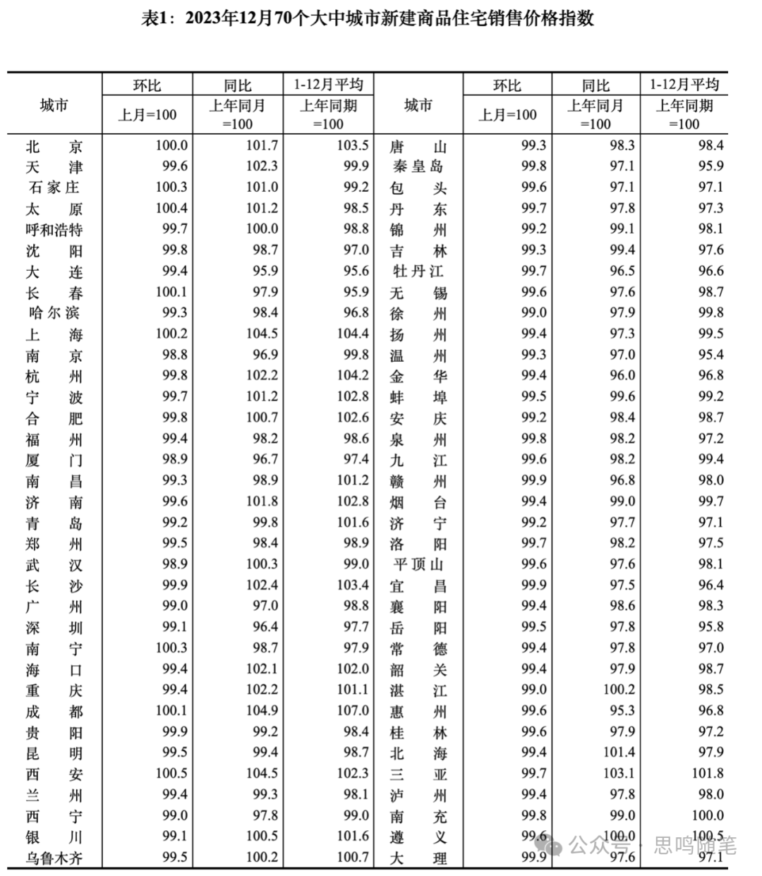 1月17日,国家统计局公布2023年12月份70个大中城市房价变动情况:2023年12月份,70个大中城市中,各线城市商品住宅销售价格环比下降、同比有涨有降。