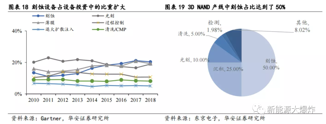相比光刻机,蚀刻机的技术难度低一些,但同样具有非常高的技术含量,而且在整个半导体体系中,它的价值含量不比光刻机低,尤其是随着 3D NAND 的大发展,蚀刻机的设备的价值含量越来越大。