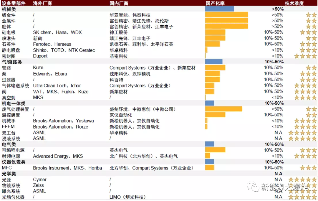 但机械类里面,技术含量比较高的环节,比如静电吸盘、密封圈等相对较难的机械类零部件国产化率仍然较低,甚至不到1%。