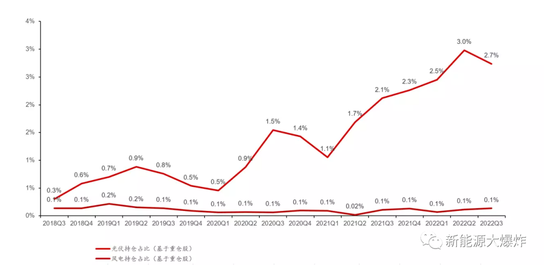 公募基金的持仓也处于比较低的水平,并没有因为这两年新能源行业的火爆而大幅度提升,相比光伏行业,更是差距巨大,后续“风”来了,公募基金将不得不扮演“追风者”。