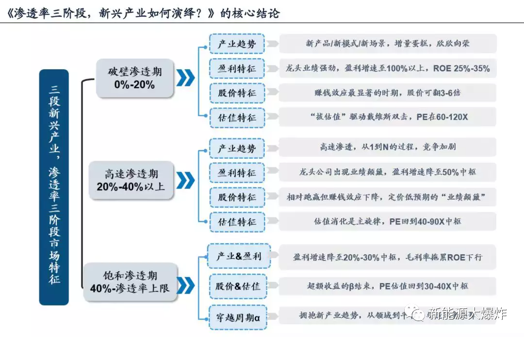 而且根据新兴产业在不同渗透率过程中,产业和相关公司的二级市场的一般表现规律。