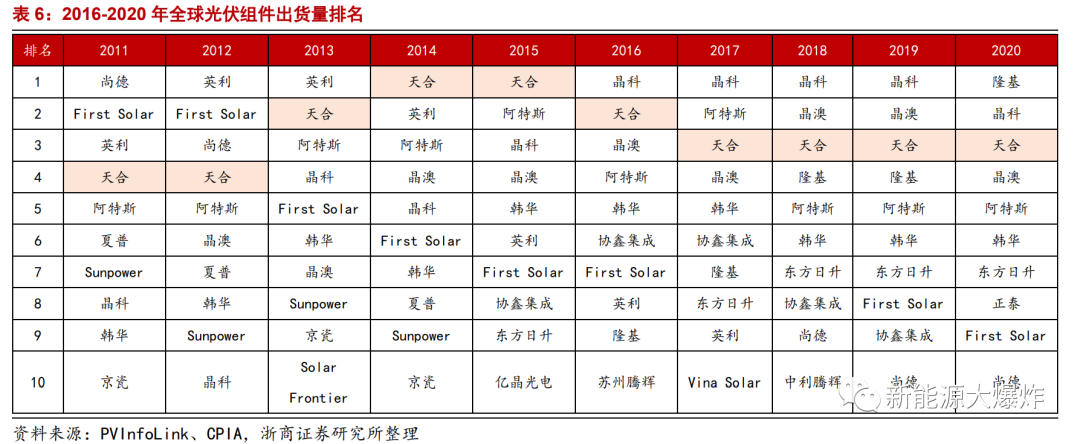 如果按照近期市场的观点,认为光伏组件行业没有门槛,那么理论上,在内卷极其严重的光伏行业,组件领域的竞争也一定是极其激烈的,行业的前排公司榜单一定会出现剧烈的变化。