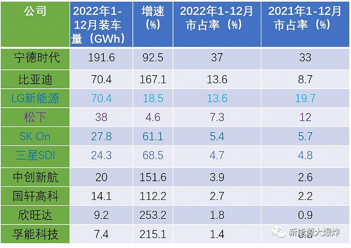 比亚迪已经成长为全球新能源汽车龙头,连特斯拉的销量都被碾压了,而且还在高歌猛进,关键比亚迪是恨不得一颗螺丝钉都自研的主儿,电池本身就是发家业务,刀片电池这两年更是如雷贯耳,非常受市场青睐,出货量已经位居全球第二。