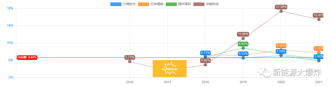 虽然2021年宁德时代的营收与产科破千亿了,2022年更是超过2000亿,但宁德时代的研发费率依然保持在5% 左右,跟几个后排厂商并没有太大的差距,而如果看绝对值就是天差地别了!