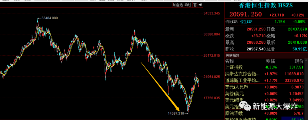 香港被淹没在各种各样的唱衰声音中,一时间人人都觉得港股市场要完蛋了,从此没有什么机会了,港股市场也从利空压制转成了多杀多的大逃亡,恒生指数最惨的时候,一度回到了十几年前的点位。