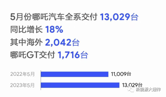 哪吒汽车5月全系交付 13029台,同比、环比分别增长 18%、15%,当月海外交付2042台。