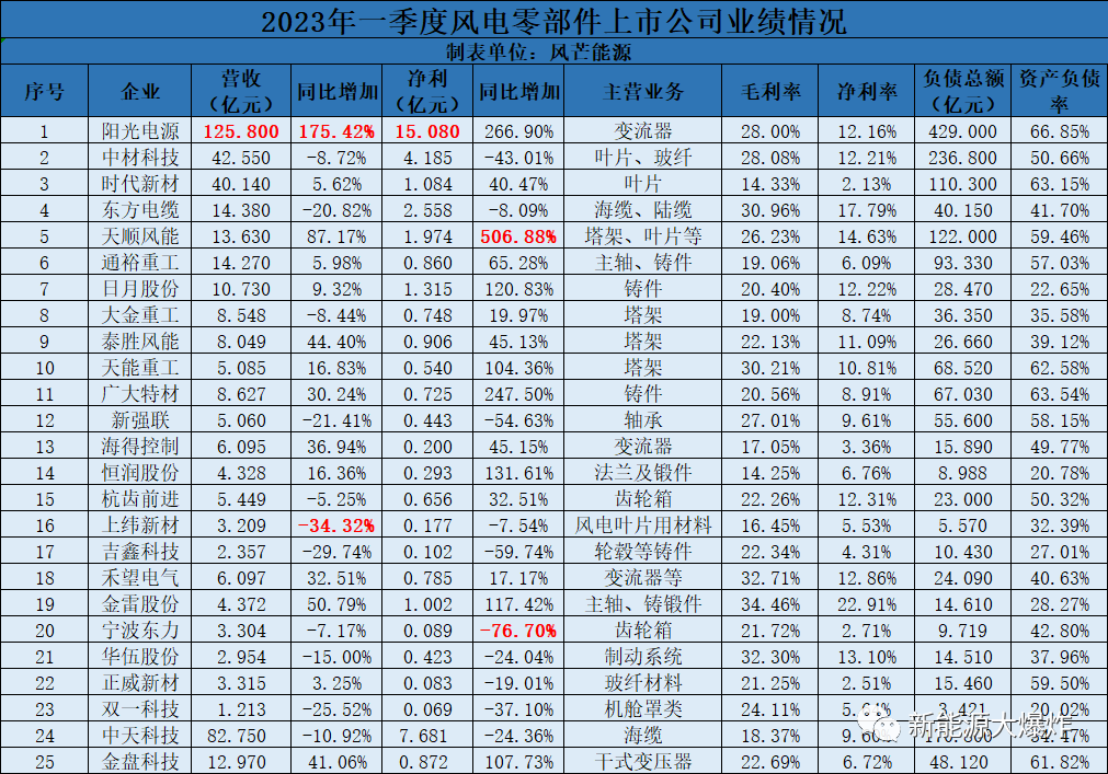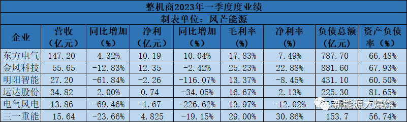 再看风电行业的2023年Q1业绩,由于整机环节还在持续打价格战,导致大部分主机厂商的业绩依然低迷。