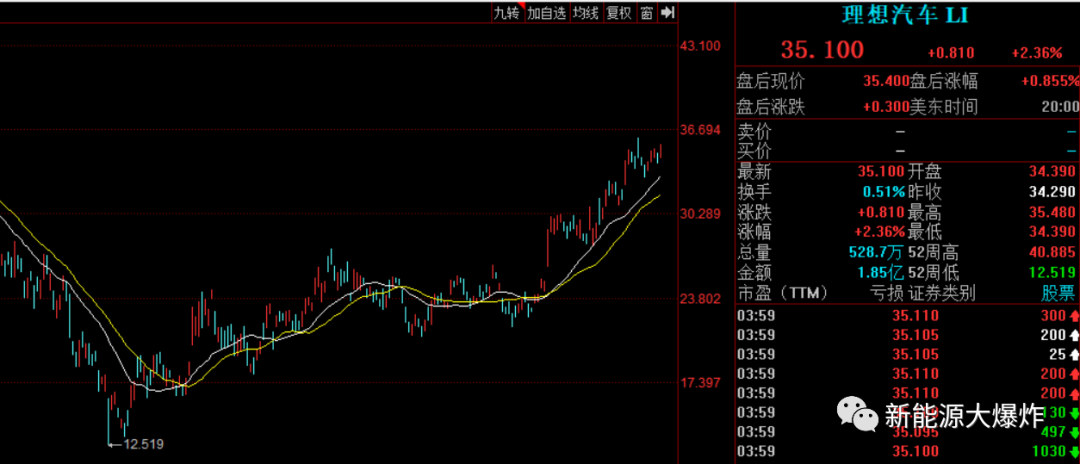 得益于强劲的销量表现,理想汽车二级市场走势也持续创今年新高,从最底部已经起来2倍了,关键理想开始赚钱,跟蔚来和小鹏的差距越拉越大。