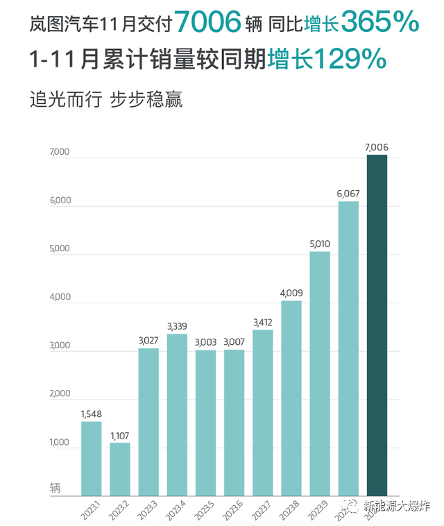 如果说新势力11月的销量,一方面是创单月销量新高,一方面是环比增速下滑,总体只能说基本符合预期,则个别车企悄悄从泥潭里走出来,甚至迎头赶上,就是大大超预期了,其中又以岚图汽车最为典型。
