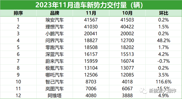 从上面各种新势力的销量榜单来看,11月份绝大多数公司都实现了环比增长,无非是增幅大小的问题而已,受伤的只有蔚来,11月交付1.6万辆,环比略微下滑了0.71% 。