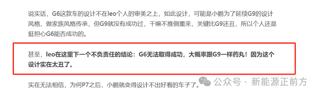 新能源正前方偏向于订单数据注水,虽然此前官方和网上都把g6吹上天了,但leo一开始就说过,“不看好g6,因为设计实在太丑了!”