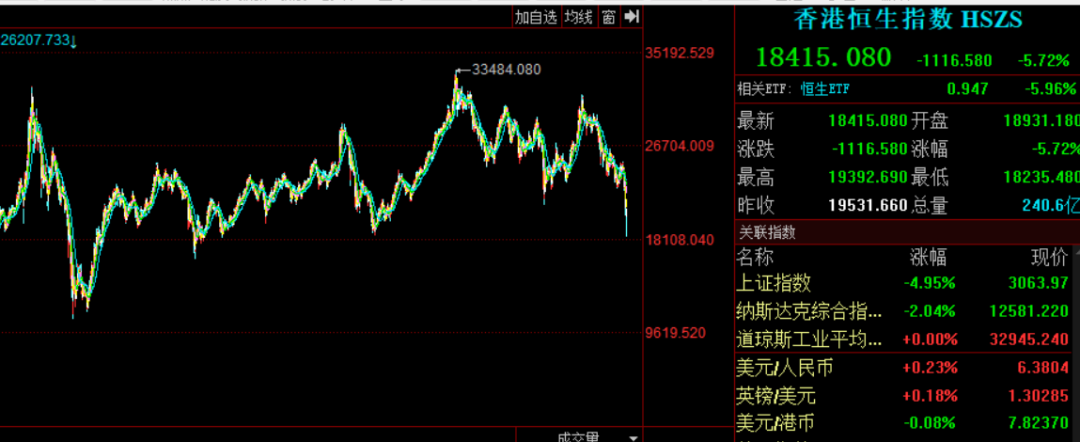 再看香港恒生指数,它已经跌破了19000点了,比2016年的时候还低了!